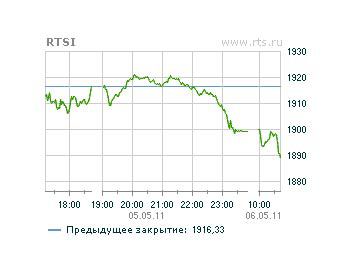 Торги акциями в РТС начались снижением, в результате индекс биржи опустился ниже 1900 пунктов. К 10:45 по Москве индекс РТС откатился на 1,35 процента от вчерашнего закрытия до 1890,38 пунктов.