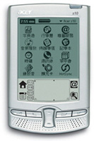 На рынке собственных Palm клонов отметилось множество компаний, Acer со своим s10 не последняя из них. Напомним что s10, уже пару месяцев успешно продаваемые в Азии имеет 33 мегагерцовый процессор, 16 мегабайт памяти, стандартный для Palm устройств монохромный ЖК дисплей с разрешением 160х160 пикселей, размеры 120x77x13 мм., при 140 граммах веса, то есть по техническим характеристикам это аналог м500 от Palm computing. Правда у S10 есть приятно-необычные моменты, хотя КПК поддерживает дорогие и мало емкие карты памяти от Sony (Memory Stick) он имеет встроенные декодер МР3, а так же встроенный диктофон, и все это за 325$, что вполне не уровне м500 и аналогов.