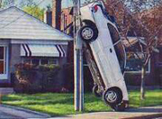 В одном из западных районов Торонто произошла необычная авария. Машина в прямом смысле слова въехала на электрический столб. Посмотреть на это зрелище собралась целая толпа.